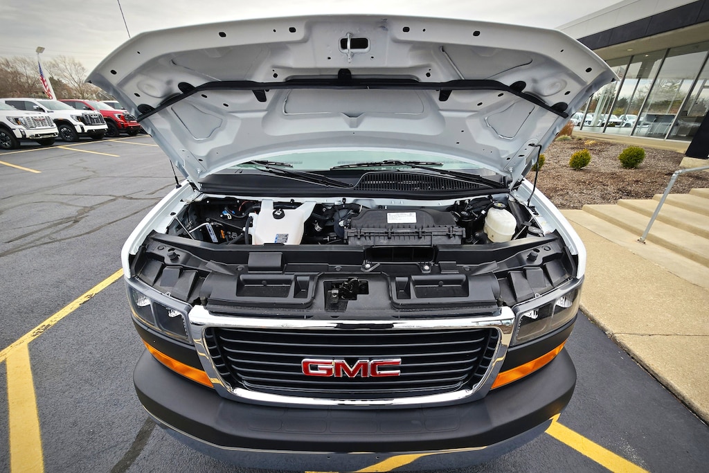 This GMC Savana Cargo Van delivers a Gas V6 4.3L/ engine powering this Automatic transmission. WORK VAN PREFERRED EQUIPMENT GROUP Includes standard equipment, WHEELS, 4 - 16" X 6.5" (40.6 CM X 16.5 CM) STEEL includes Gray center caps and steel spare (STD), TRANSMISSION, 8-SPEED AUTOMATIC, ELECTRONICALLY CONTROLLED with overdrive and tow/haul mode. Includes Cruise Grade Braking, Powertrain Grade Braking and Tap-Up/Tap-Down Driver Shift Control (STD).