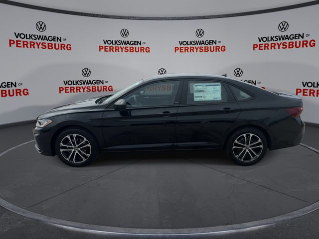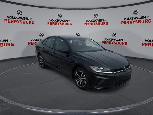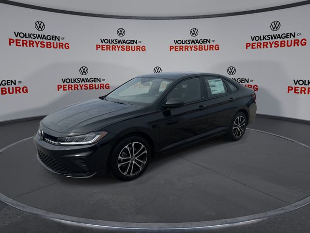 Deep Black Pearl 2026 Volkswagen Jetta 1.5T Sport FWD 8-Speed Automatic with Tiptronic 1.5L I-4 DI DOHC Turbocharged Titan Black Cloth.