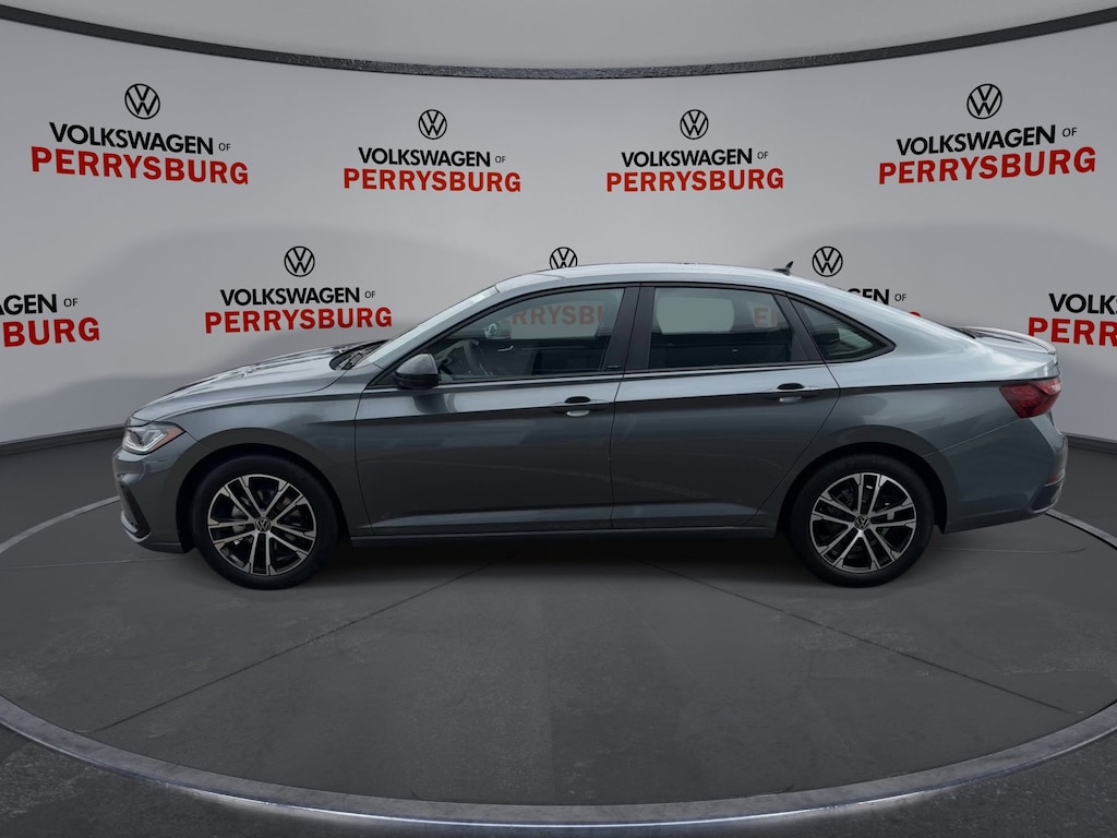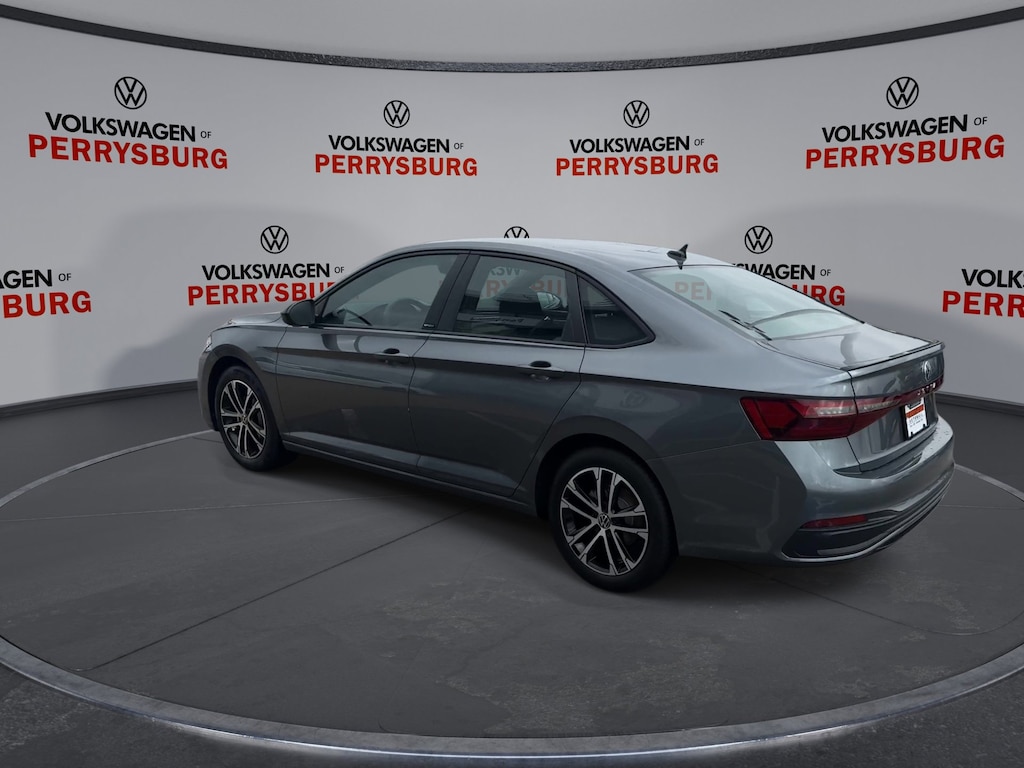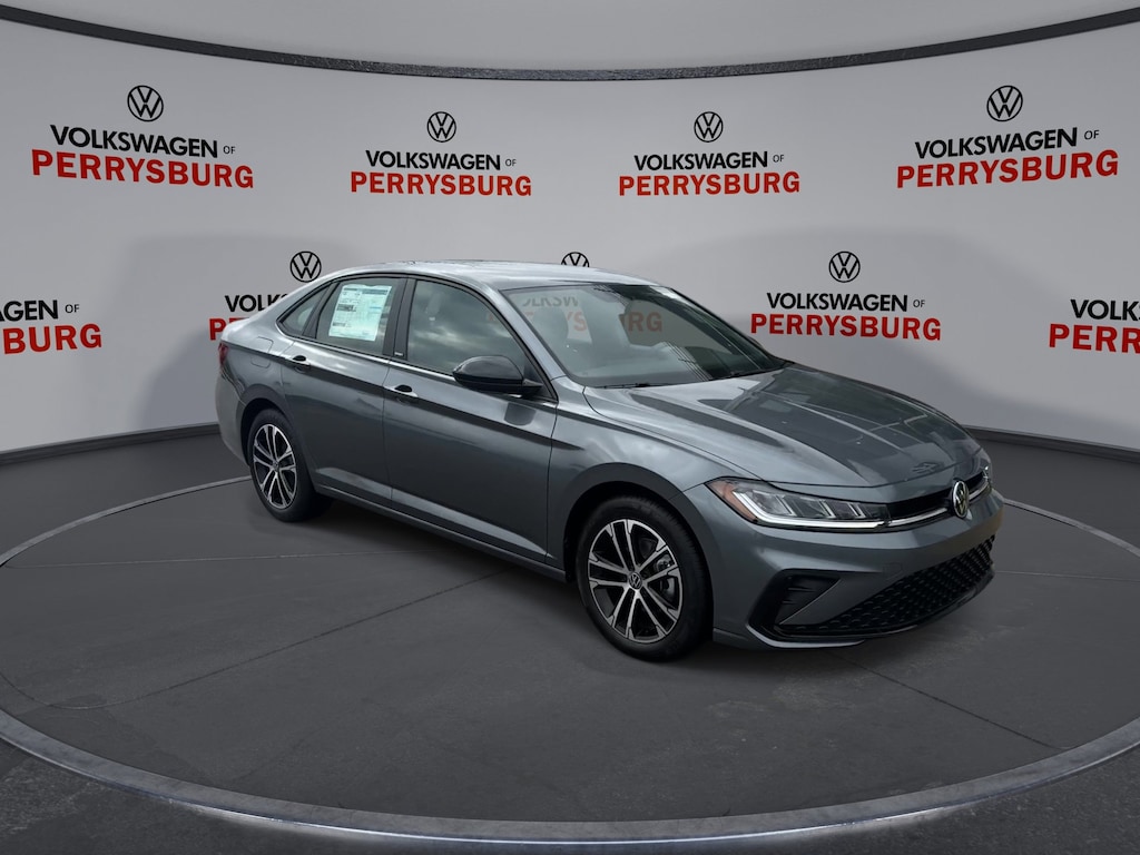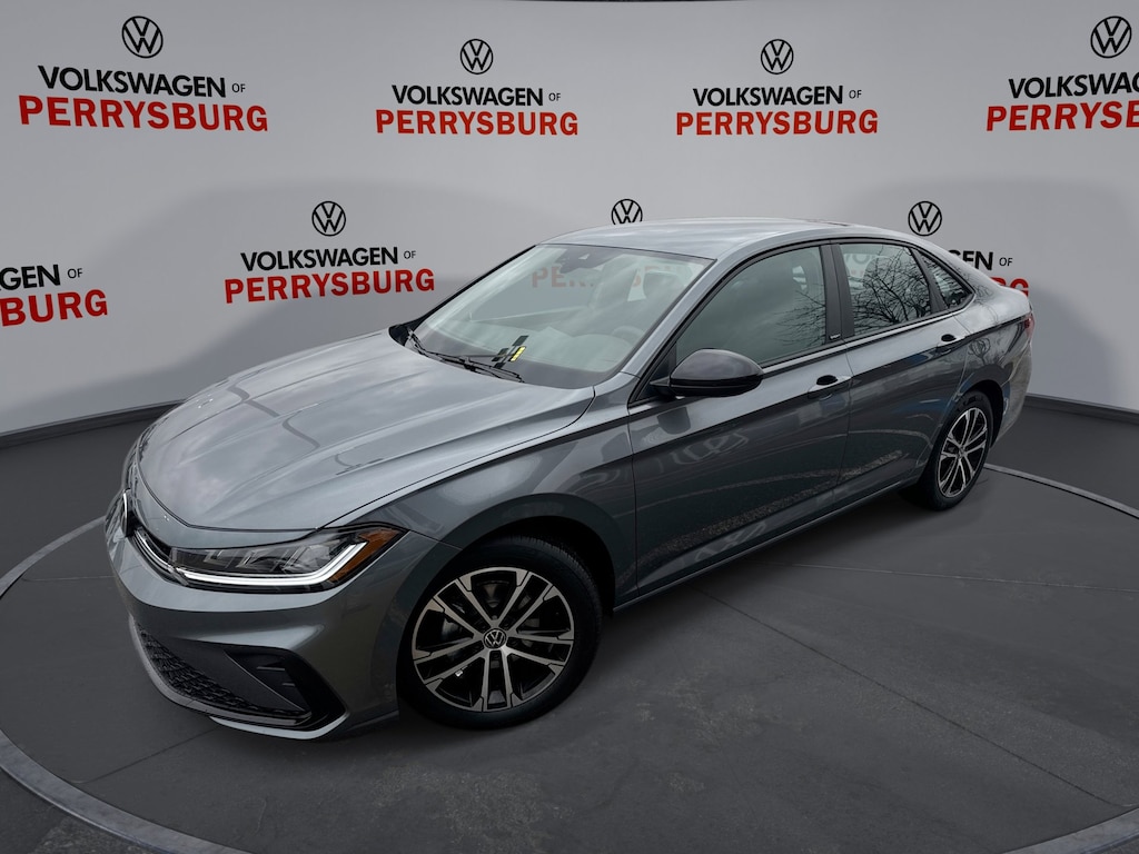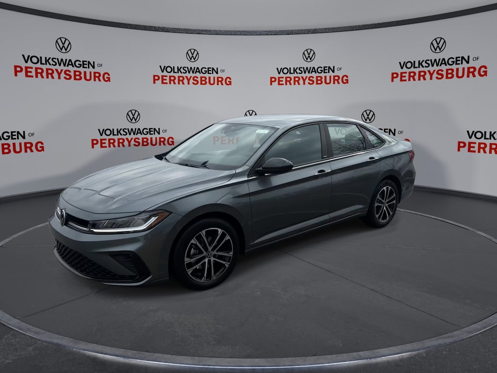 Platinum Gray Metallic 2026 Volkswagen Jetta 1.5T Sport FWD 8-Speed Automatic with Tiptronic 1.5L I-4 DI DOHC Turbocharged Titan Black Cloth.