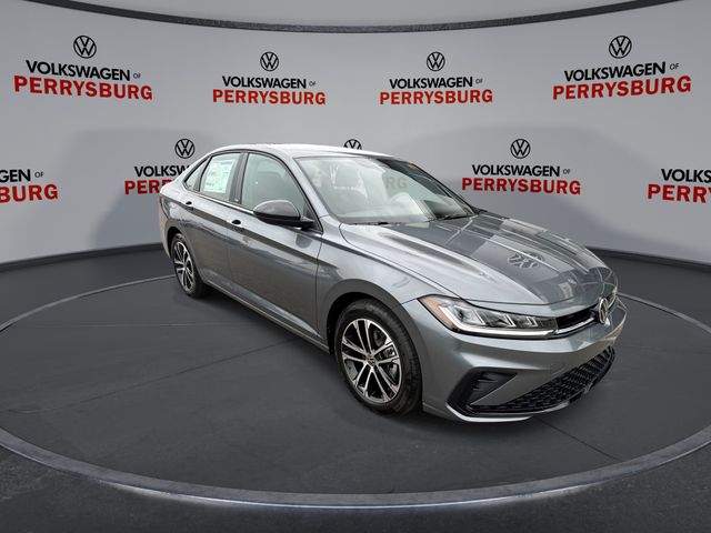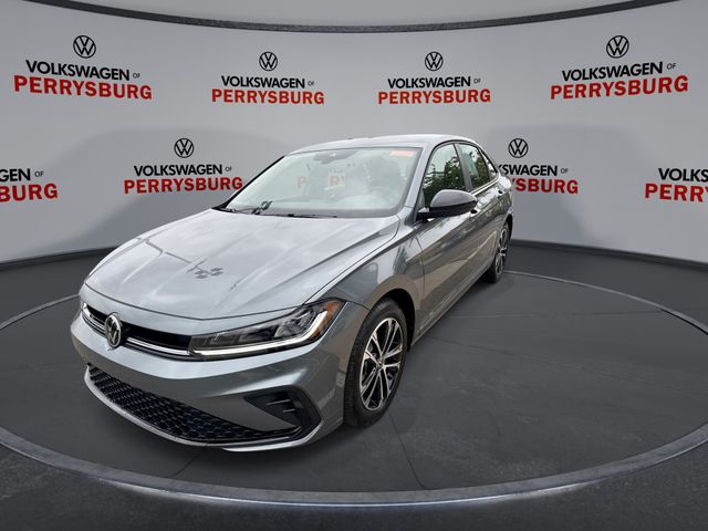 2025 Volkswagen Jetta Sport finished in Platinum Gray Metallic with Titan Black interior, retired demo with only 8,849 miles, priced under 25k, making it a strong opportunity for anyone searching for a low mileage sedan with modern features.
